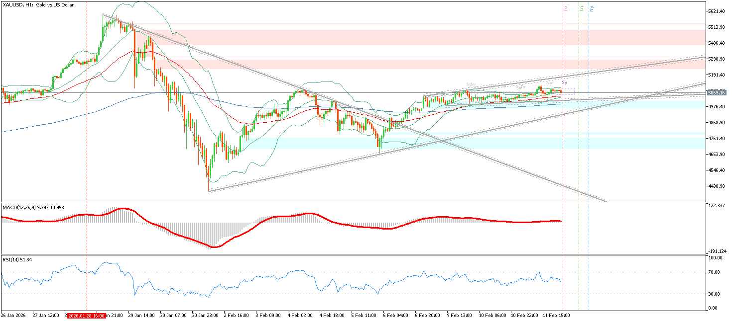 تحلیل تکنیکال طلا (XAU/USD) در تایمفریم ۱ ساعته – ۱۲ فوریه ۲۰۲۶