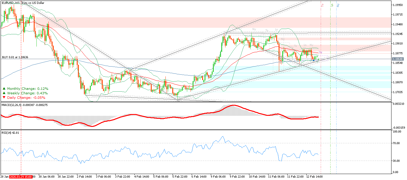تحلیل تکنیکال یورو/دلار (EUR/USD) در تایمفریم ۱ ساعته – ۱۲ فوریه ۲۰۲۶